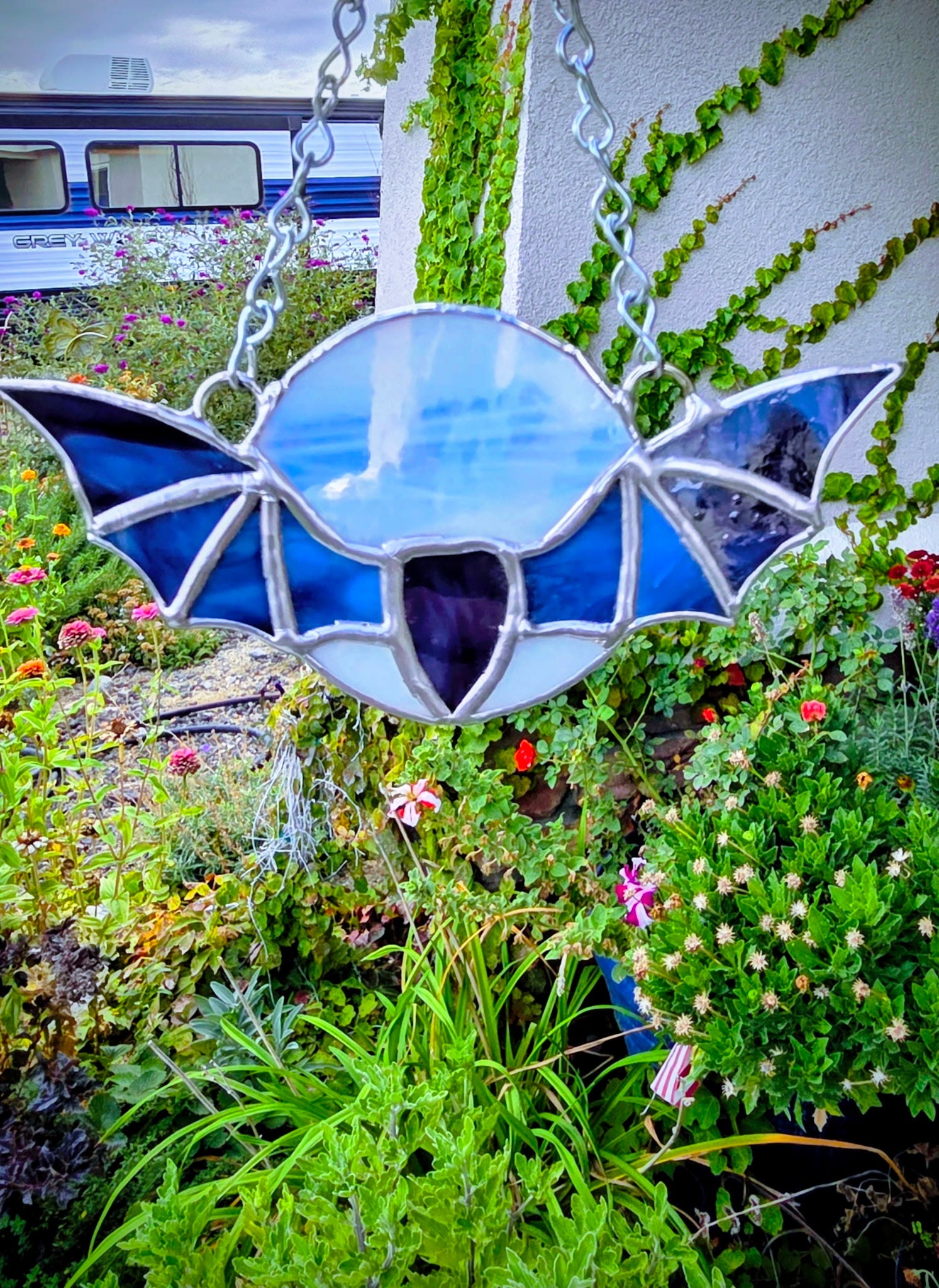 Handmade stained glass Bat, perfect for hanging and adding a luminous, celestial touch to any room.